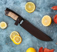Филейный нож из нержавеющей стали N690, рукоять - венге + береста, кожаный чехол в комплекте.
