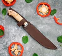 Филейный нож из нержавеющей стали N690, рукоять - стабилизированная карельская береза, кожаный чехол в комплекте.