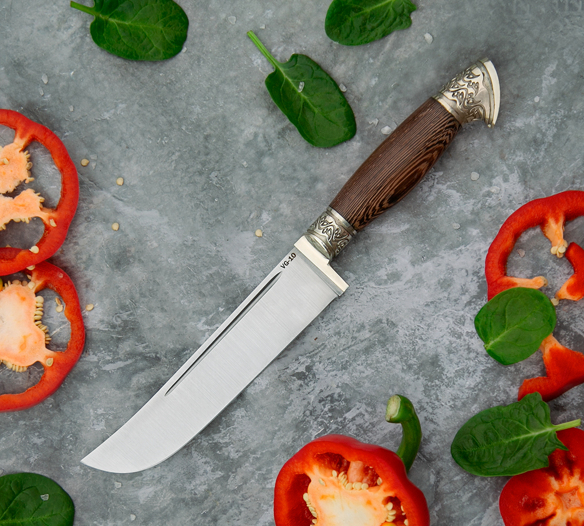 Нож Узбек-пчак из нержавеющей стали VG-10, рукоять - венге, кожаный чехол в комплекте.